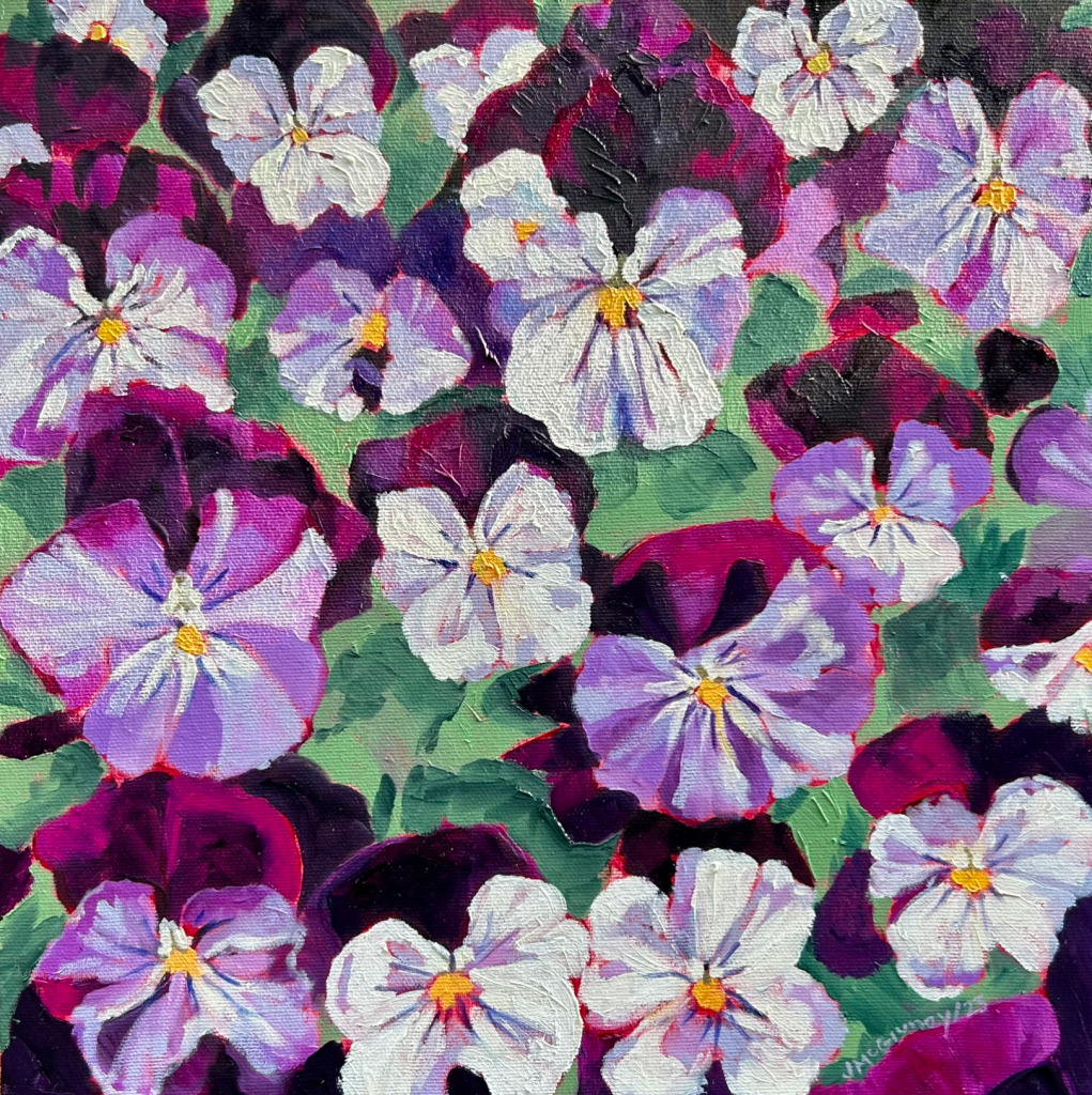 Irises 2019 12″ x 12″ Oil on Canvas. SOLD